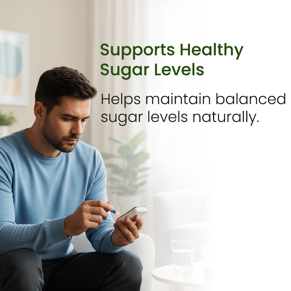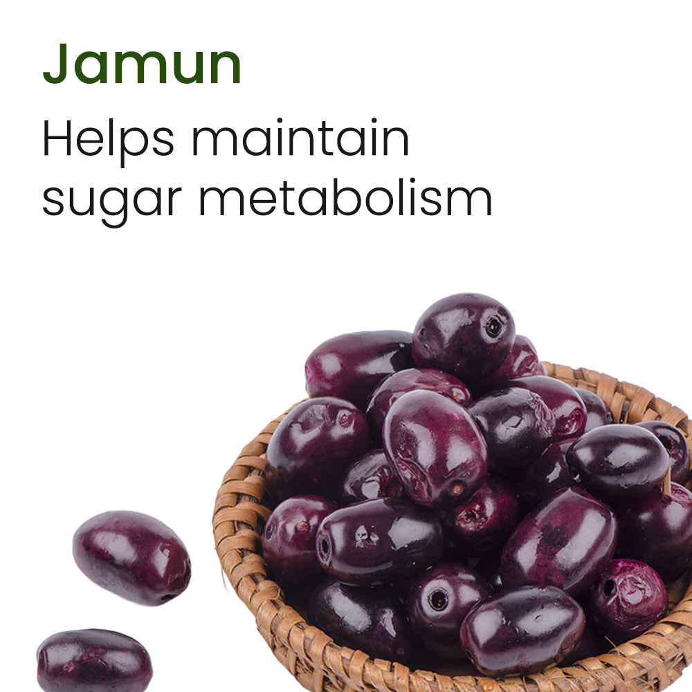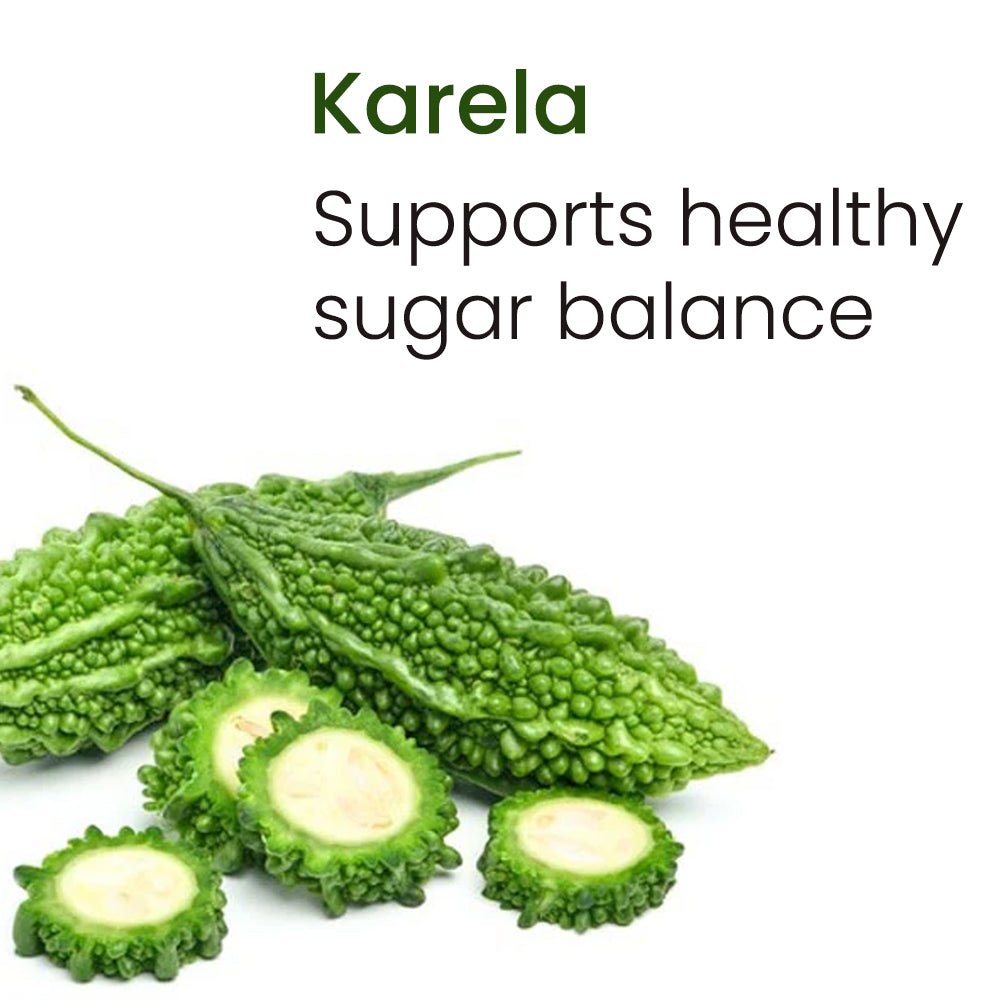 Each 10 Grams Contains Powder Aqueous Extract : Karela 2000mg, Jamun 2000mg, Gudmar 800mg, Giloy 400mg, Tulsi 600mg, Haldi 800mg, Vijaysar 600mg, Neem 600mg, Ashwagandha 600mg, Fenugreek 400mg, Harad 400mg, Amla 600mg, Shilajit 200mg