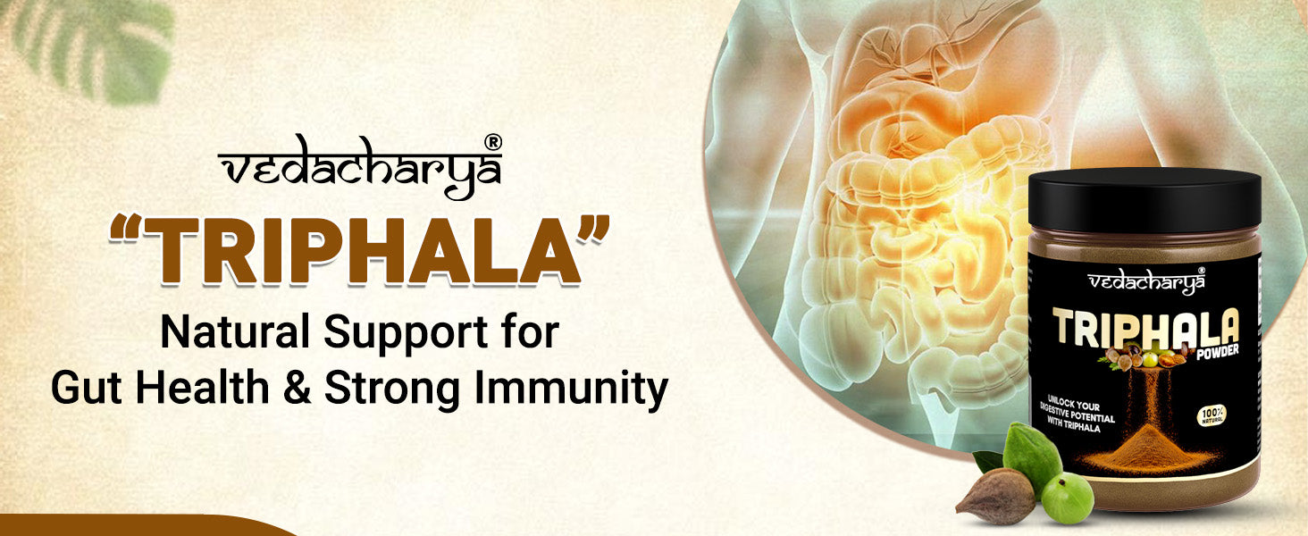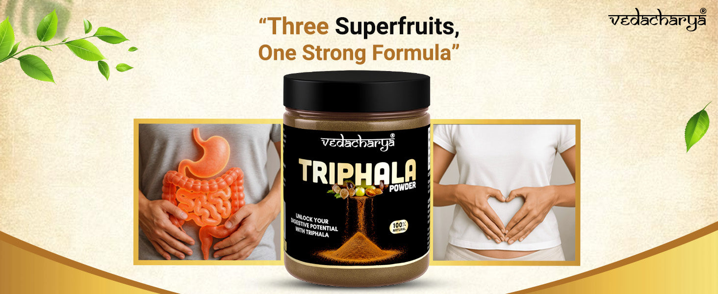 At Vedacharya, we bring you a 100% pure, organic, and traditionally processed Triphala Powder — free from additives, chemicals, or preservatives — for authentic results you can trust.